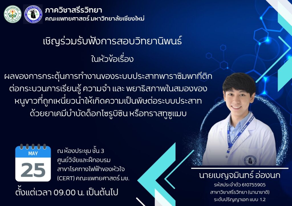 ภาควิชาสรีรวิทยาขอเชิญร่วมรับฟังการสอบวิทยานิพนธ์ของ