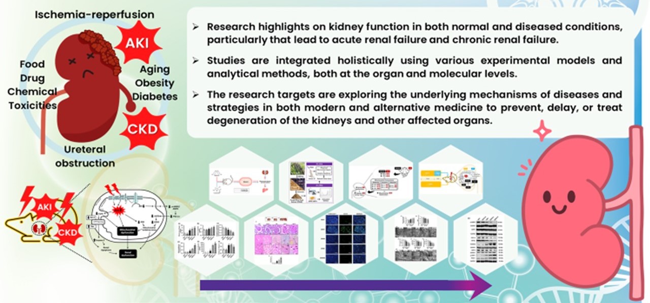 หน่วยวิจัย Integrative Renal Research มุ่งเน้นศึกษาการทำงานของไตทั้งในภาวะปกติและภาวะที่เกิดโรคในรูปแบบต่าง ๆ โดยเฉพาะที่นำไปสู่ภาวะไตวายฉับพลัน (Acute renal failure) และ ภาวะไตวายเรื้อรัง (Chronic renal failure) การวิจัยเป็นแบบบูรณาการในองค์รวมทั้งในระดับอวัยวะและระดับโมเลกุล โดยมีเป้าหมายเพื่อค้นหากลไกใหม่ ๆ ที่ทำให้เกิดความผิดปกติ ตลอดจนการศึกษาค้นคว้าถึงวิธีการต่าง ๆ ทั้งในรูปแบบของการแพทย์แผนปัจจุบันและการแพทย์ทางเลือกรวมถึงสมุนไพรและผลิตภัณฑ์จากธรรมชาติที่สามารถป้องกัน ชะลอ หรือรักษาการเสื่อมของไต และอวัยวะอื่น ๆ ที่ได้รับผลกระทบ โดยมีแนวคิดว่าการเปิดกว้างและความหลากหลายนั้นมีความสำคัญอย่างยิ่งต่อการส่งเสริมคุณภาพของงานวิจัย